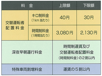 ※交替運転者配置料金は上限額および下限額の範囲内で適用されます。