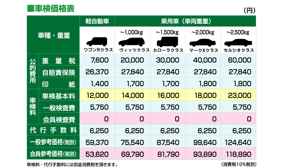※重量税は初年度登録によって変わります。 ※車のグレード等により、必ず該当するとは限りません。※車検証の車両重量をご確認ください。 ※部品交換など別途追加整備が発生した場合は、お見積もりのうえご相談させていただきます。